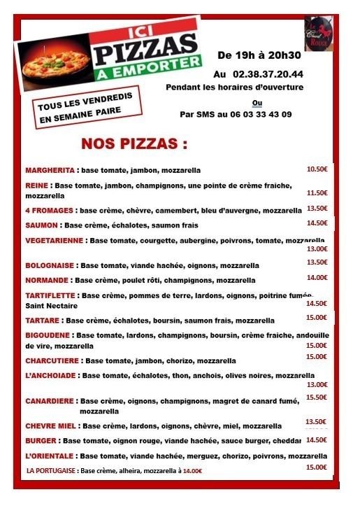 pour ses délicieuses pizzas et burgers, exclusivement à emporter.