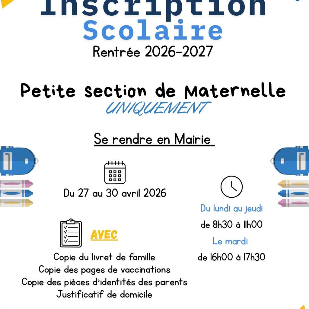 Plus de renseignements à l’accueil de la Mairie