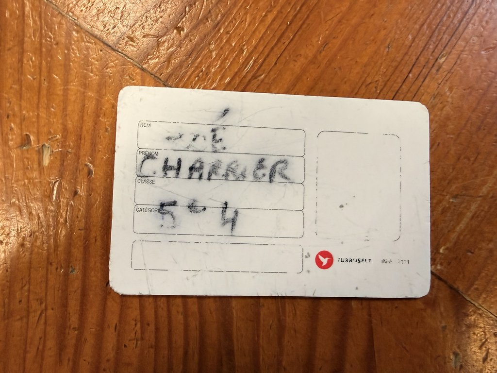 Carte de self du collège de Sully au nom de CHARRIER retrouvée sur la commune.