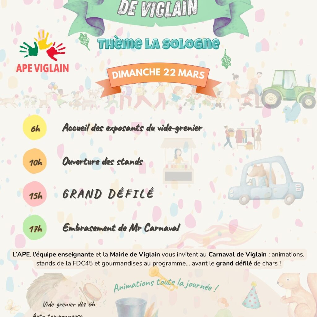 Venez nombreux au Carnaval et Vide grenier de Viglain 🎉
