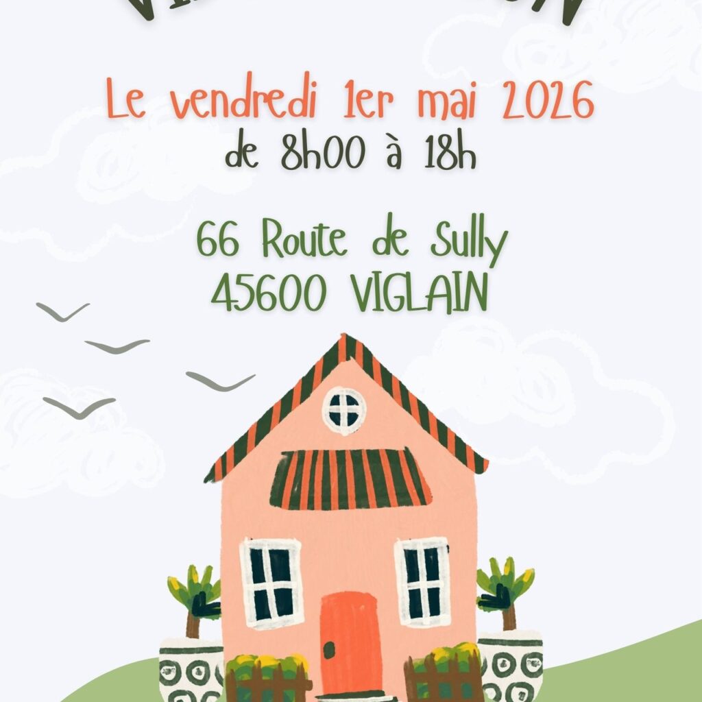 VIDE MAISON Le vendredi 1er mai 2026 de 8h00 à 18h00 66 Route de Sully – 45600 VIGLAIN Non classé Article précédent Fermeture exceptionnelle de la Mairie Article suivant Sullias Bull Club – Fléchettes 🎯
