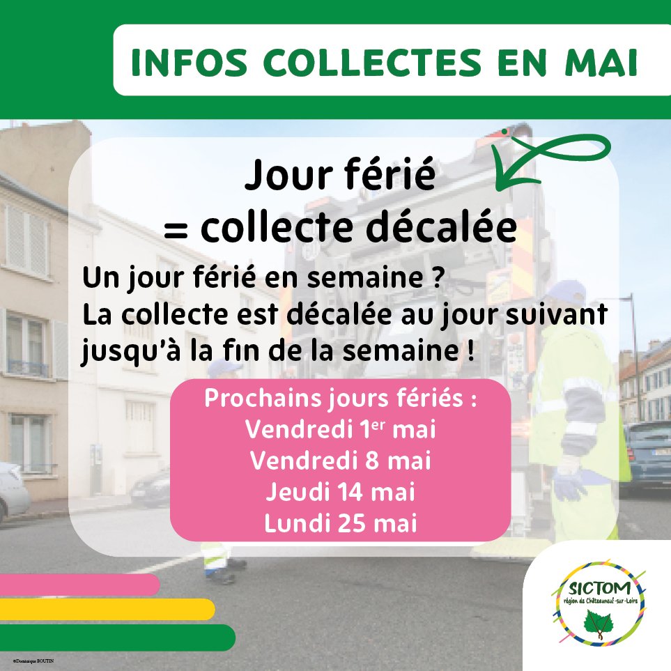 Quand la collecte tombe un jour férié, elle est décalée au lendemain, jusqu’à la fin de la semaine !