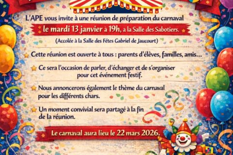 Réunion de préparation du Carnaval de Viglain Le mardi 13 janvier à 19h00 Salle des Sabotiers
